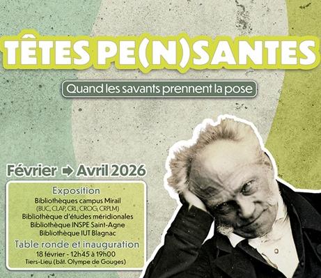 Huit bibliothèques de notre Université accueillent une exposition sur la représentation de la figure du savant depuis l'Antiquité, Têtes pe(n)santes.