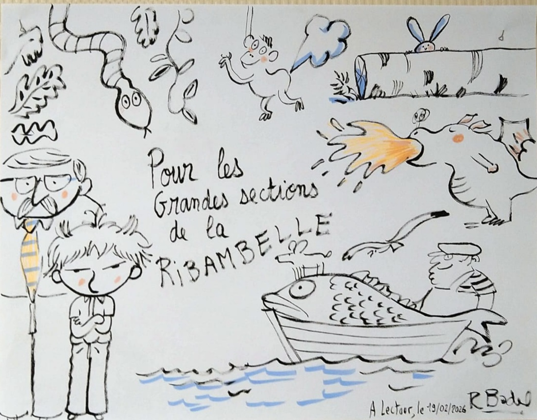 Dans le cadre de leur formation initiale, les M1 et M2, futurs professeurs des écoles ont rencontré l’auteur-illustrateur Ronan Badel à l’INSPE et dans les classes participant au projet.