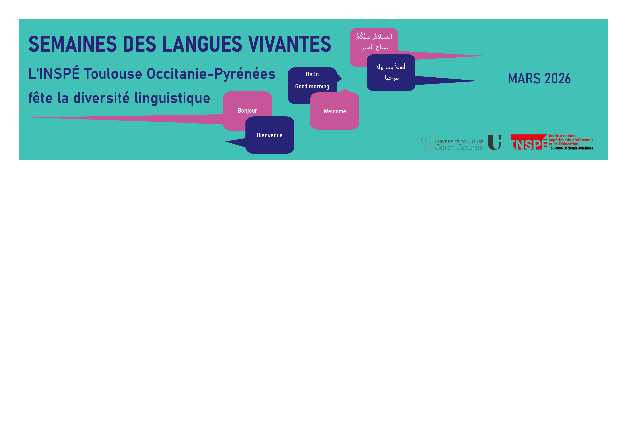 Édition 2026 de la semaine des langues à l'INSPE. A l’occasion de la 11ème édition de la Semaine des langues vivantes organisée par le Ministère de l’Education Nationale et de la Jeunesse, l’INSPE Toulouse Occitanie Pyrénées a souhaité s’associer à l’événement et fêter la diversité des langues vivantes à travers différentes actions.