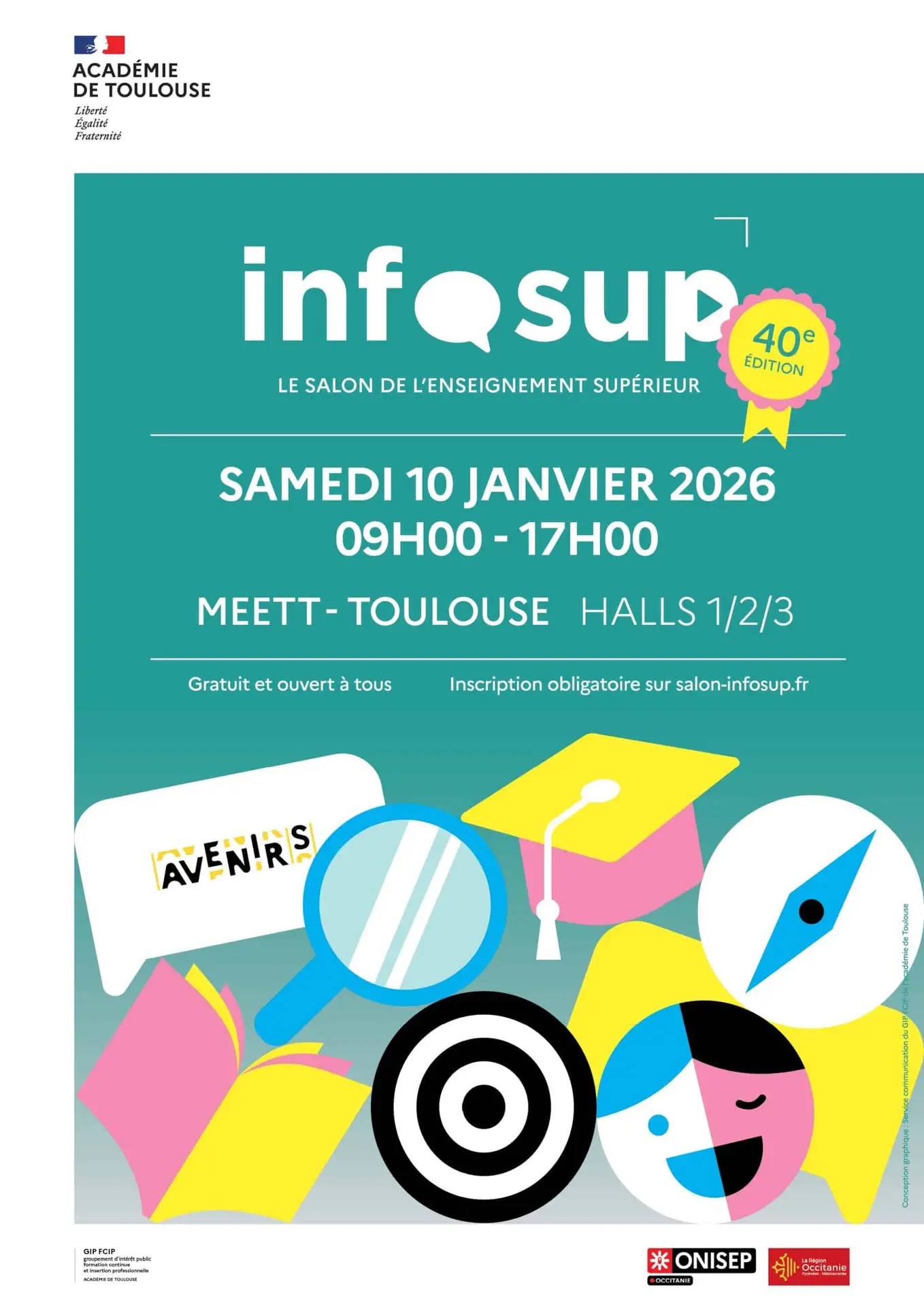 Ce salon est organisé par l'Onisep Occitanie, l’académie de Toulouse et la Région Occitanie / Pyrénées-Méditerranée.